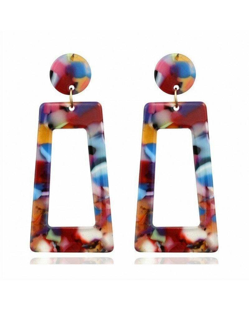 Geometriai színes - Boho egyszerű geometriai csepp csüngő akasztó akrilgyanta gyöngy fülbevalók női ékszerek