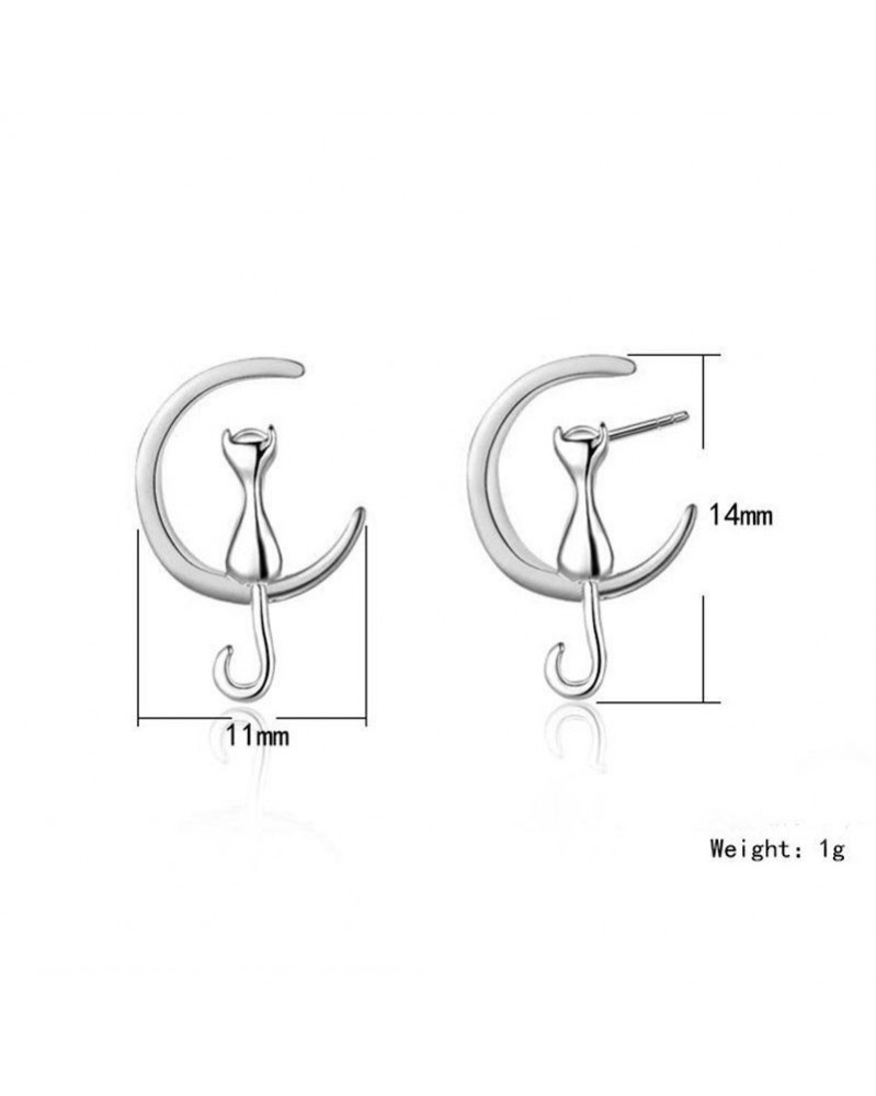 2 ezüst hold macska - HOT divat női lány ezüst fülbevaló aranyos fül Stud esküvői party ékszer ajándékok