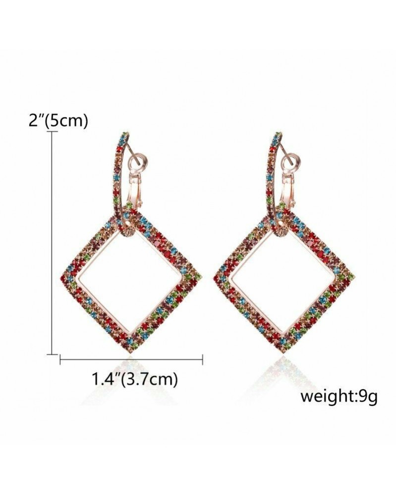 Színes rózsaszínű arany geometriai - Divat kristály geometriai kerek karika fülbevaló nők esküvői party ékszer