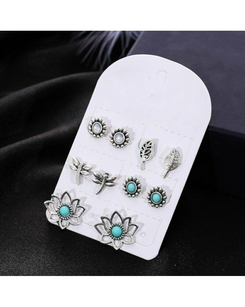 5 pár egyszerű geometriai virág ... - 5 / 6pár / szett divat női strasszos kristály gyöngy fülbevaló ékszer
