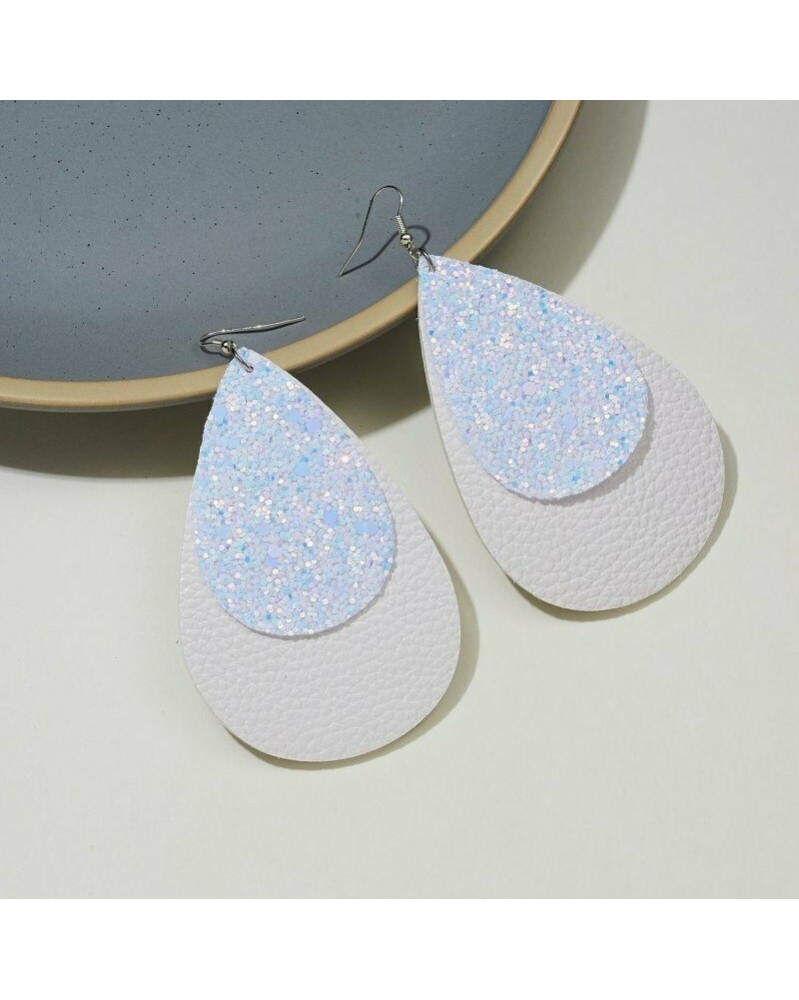 63-Fehér vízcsepp - Női Boho Leaf Teardrop valódi bőr fülbevalók Stud Hook Drop Dangle ékszerek