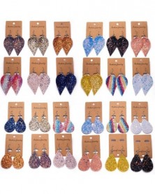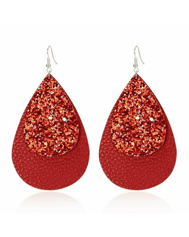58-Vörös vízcsepp - Női Boho Leaf Teardrop valódi bőr fülbevalók Stud Hook Drop Dangle ékszerek