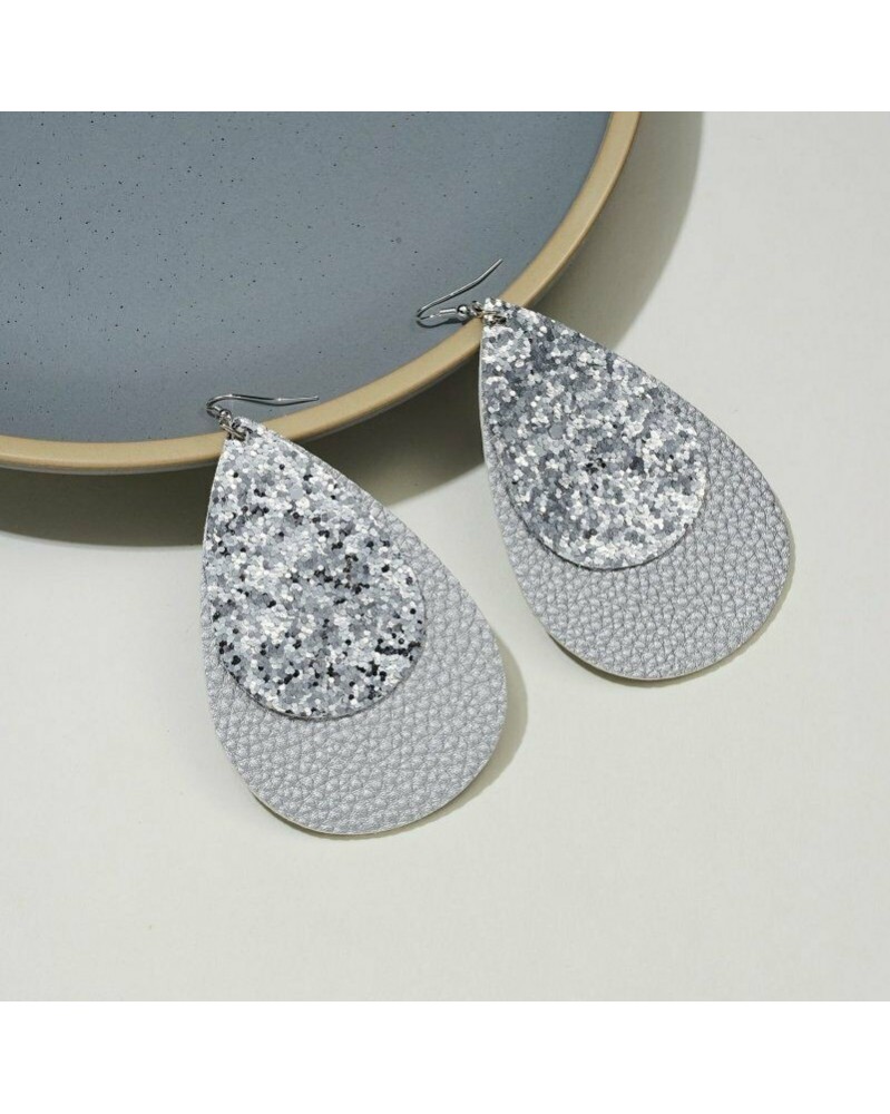 61-Ezüst vízcsepp - Női Boho Leaf Teardrop valódi bőr fülbevalók Stud Hook Drop Dangle ékszerek