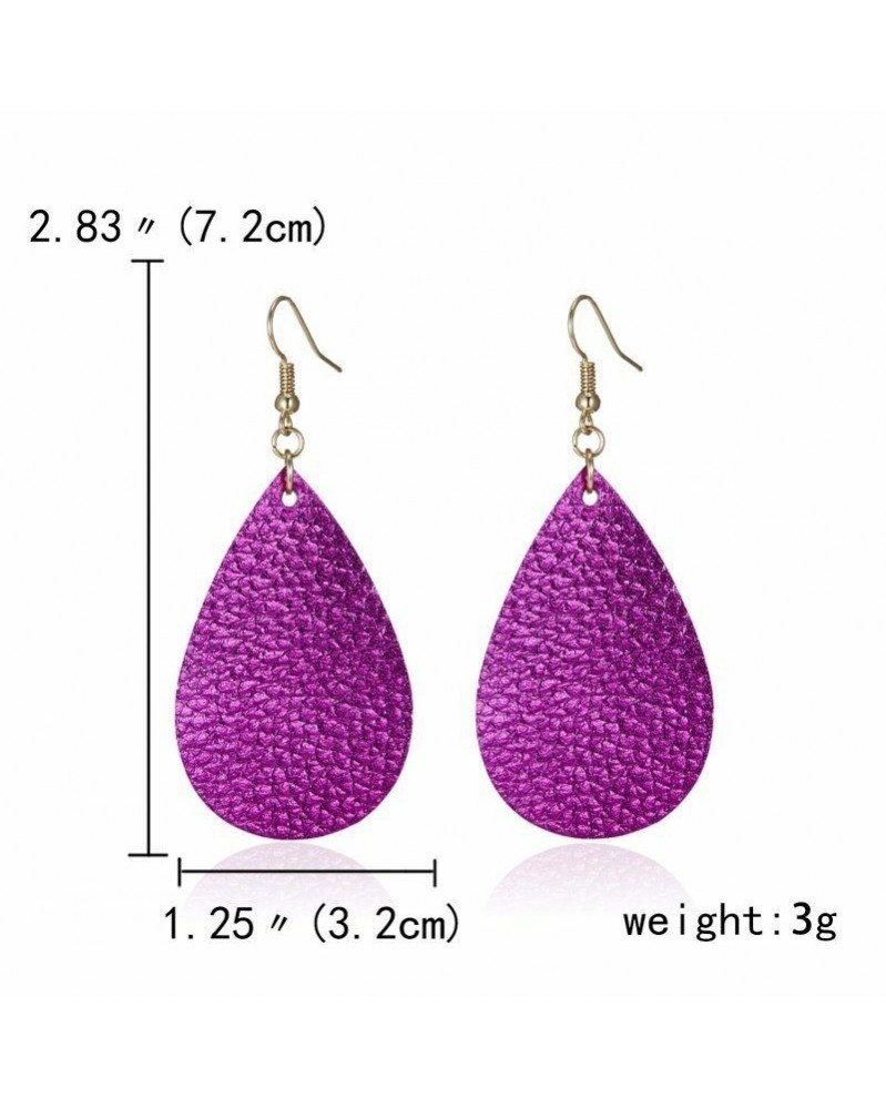 40-tollas csepp rózsaszín - Női Boho Leaf Teardrop valódi bőr fülbevalók Stud Hook Drop Dangle ékszerek