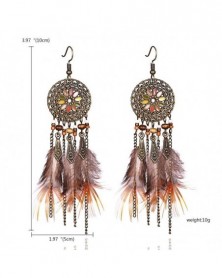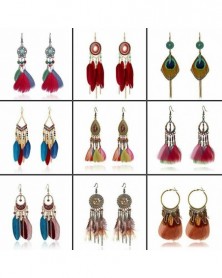 Kerek nyomtatás - Varázsa Boho női horog fülbevaló tollcsepp dangle bojt etnikai ékszer ajándék