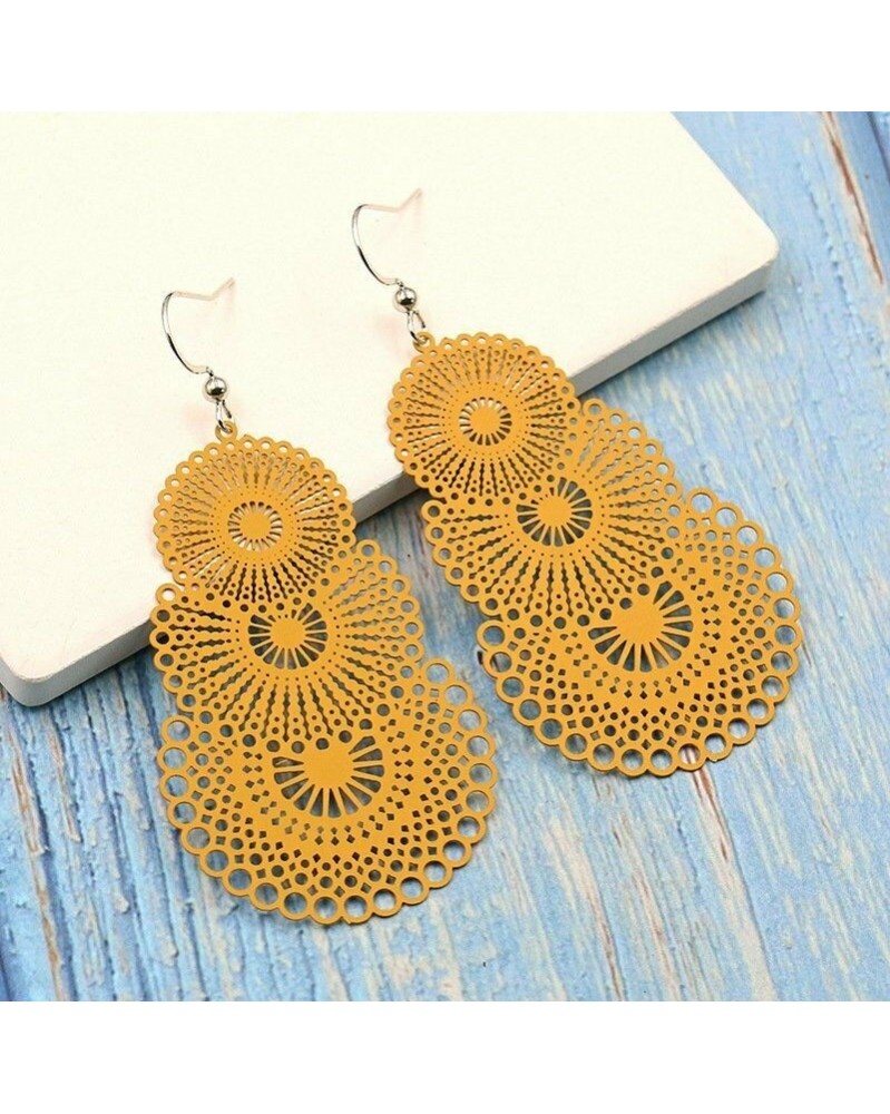 Sárga - Boho Etnikai levél üreges csepp csüngős kampós fülbevaló Dangler Charm női ékszerek