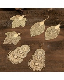 Zöld fű - Boho Etnikai levél üreges csepp csüngős kampós fülbevaló Dangler Charm női ékszerek