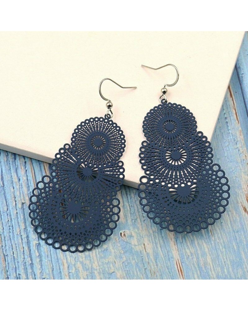 Kék - Boho Etnikai levél üreges csepp csüngős kampós fülbevaló Dangler Charm női ékszerek