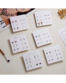 12pár - fehér - 8-15Páros szettek női kristály szív kör csillag fülbevalók esküvői ékszerek