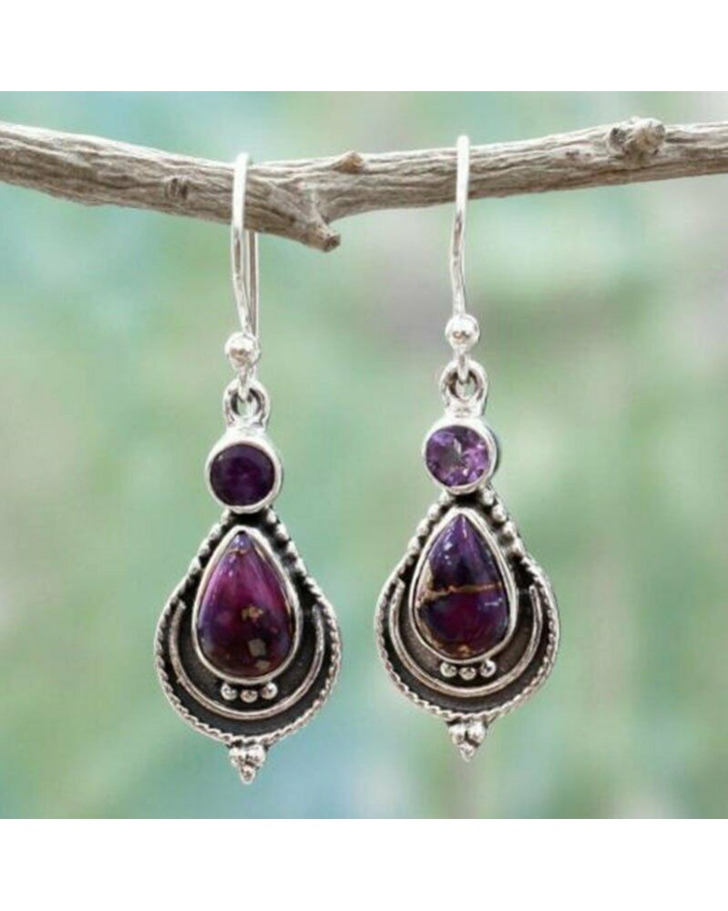* 12 - Retro ezüst dangle csepp fülbevalók fülhorog holdkő női báj ékszer ajándék