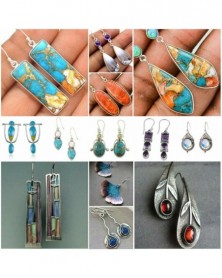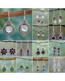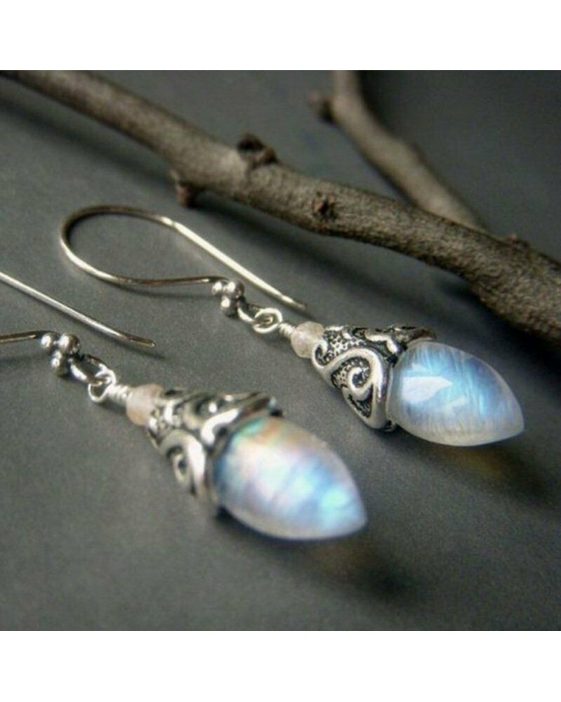 * 1 - Retro ezüst dangle csepp fülbevalók fülhorog holdkő női báj ékszer ajándék