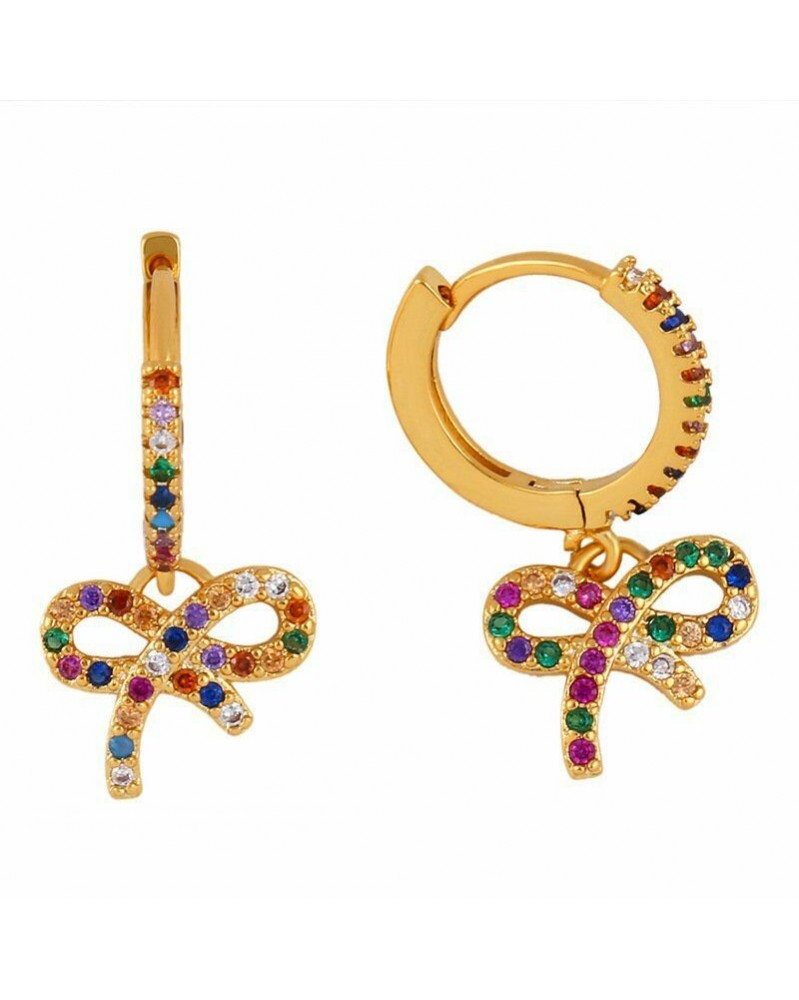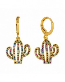 Íj - Divat arany fülbevalók nők CZ kristály szivárvány kaktusz csepp csüngő fül karika ajándék