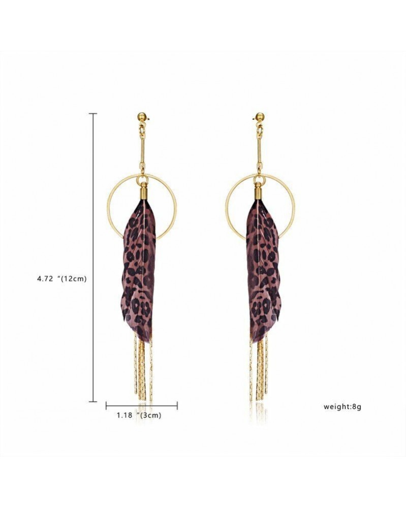 * 20 Leopard nyomtatás - Retro stílusú kézzel készített Boho hosszú tollas kampós fülbevalók Álomfogó női ajándék