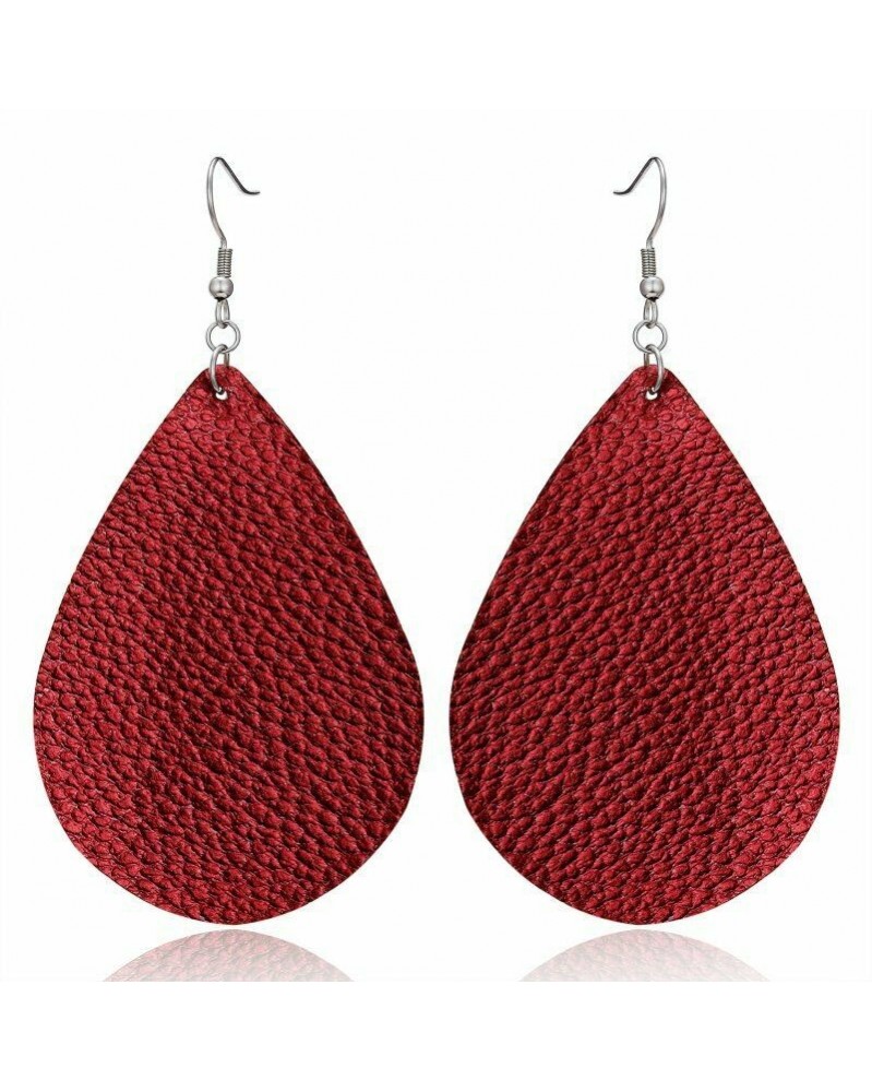 95-Vörös vízcsepp - Divat PU bőr vízcsepp levél horog fülbevaló lóg a női party ékszer ajándék