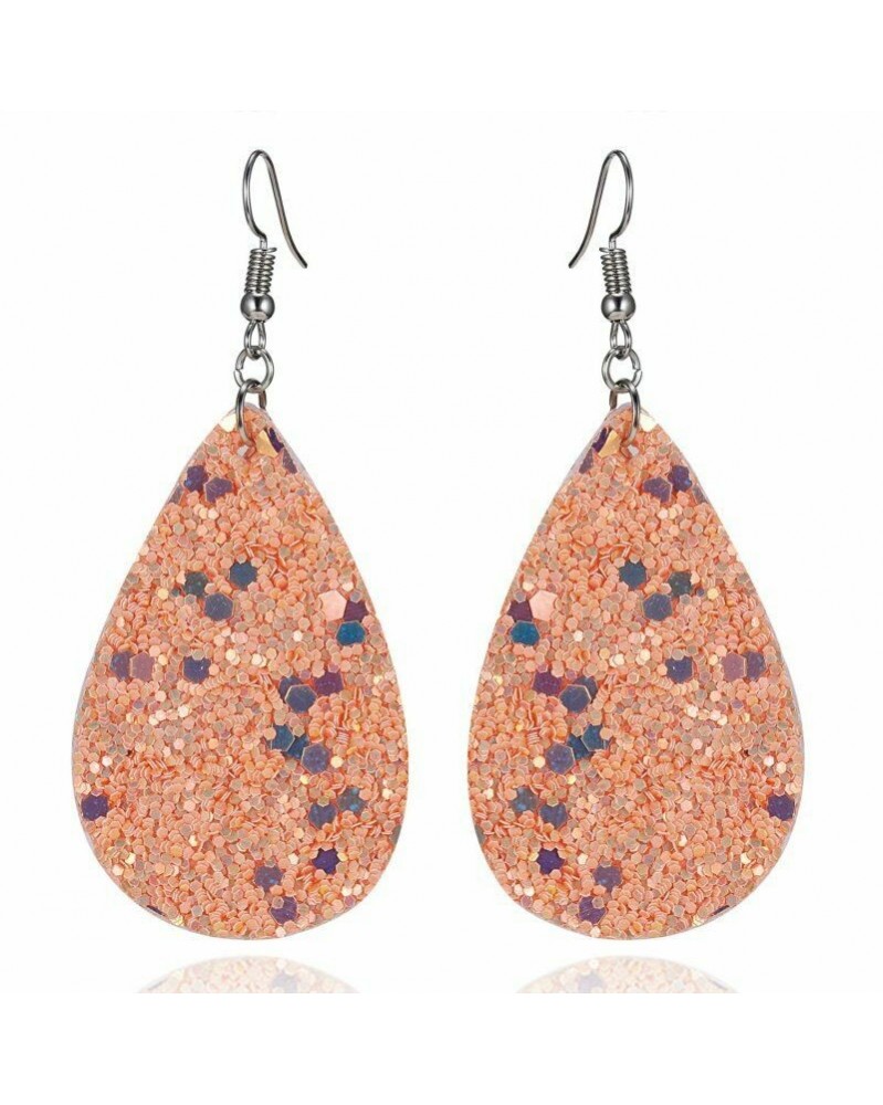 49-Rózsa arany flitteres vízcsepp - Divat PU bőr vízcsepp levél horog fülbevaló lóg a női party ékszer ajándék