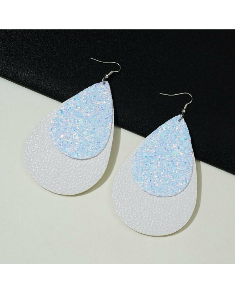 101-Fehér vízcsepp - Divat PU bőr vízcsepp levél horog fülbevaló lóg a női party ékszer ajándék