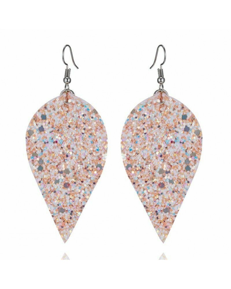29-rózsaszín flitteres levél - Divat PU bőr vízcsepp levél horog fülbevaló lóg a női party ékszer ajándék