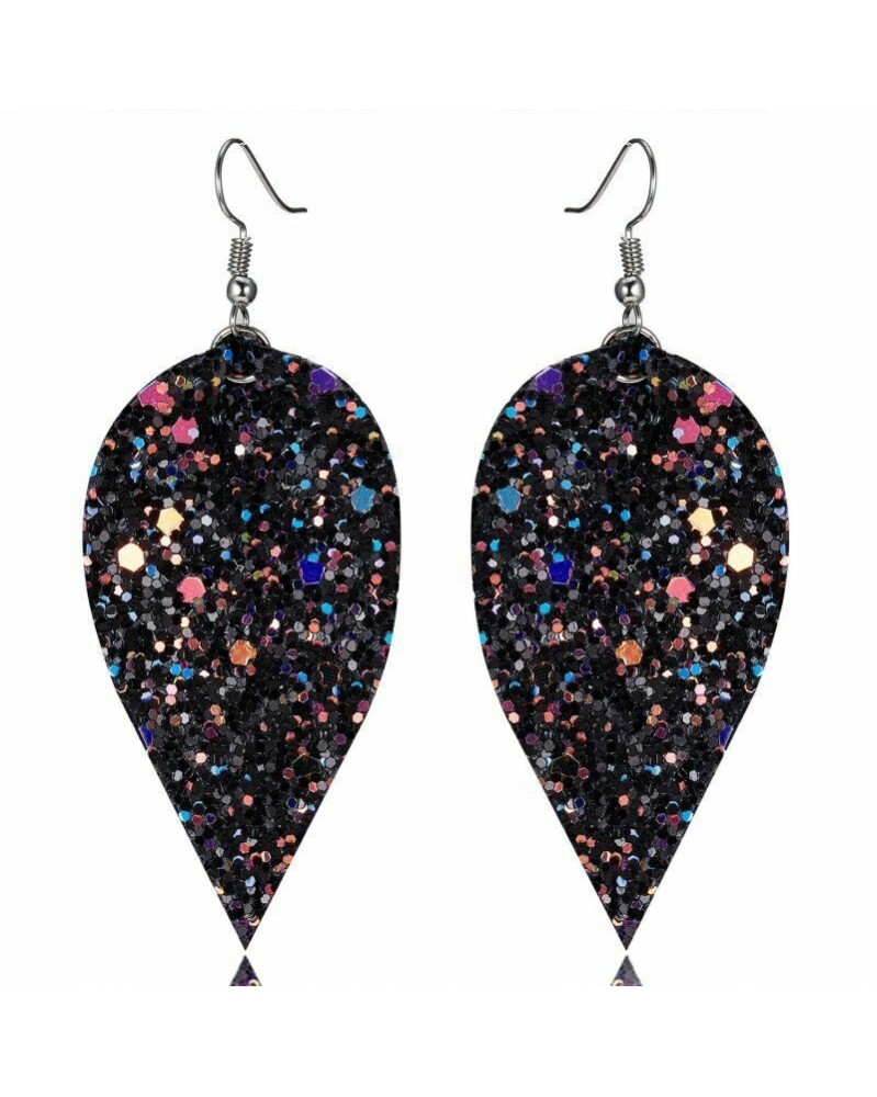 39-Fekete flitter levél - Divat PU bőr vízcsepp levél horog fülbevaló lóg a női party ékszer ajándék