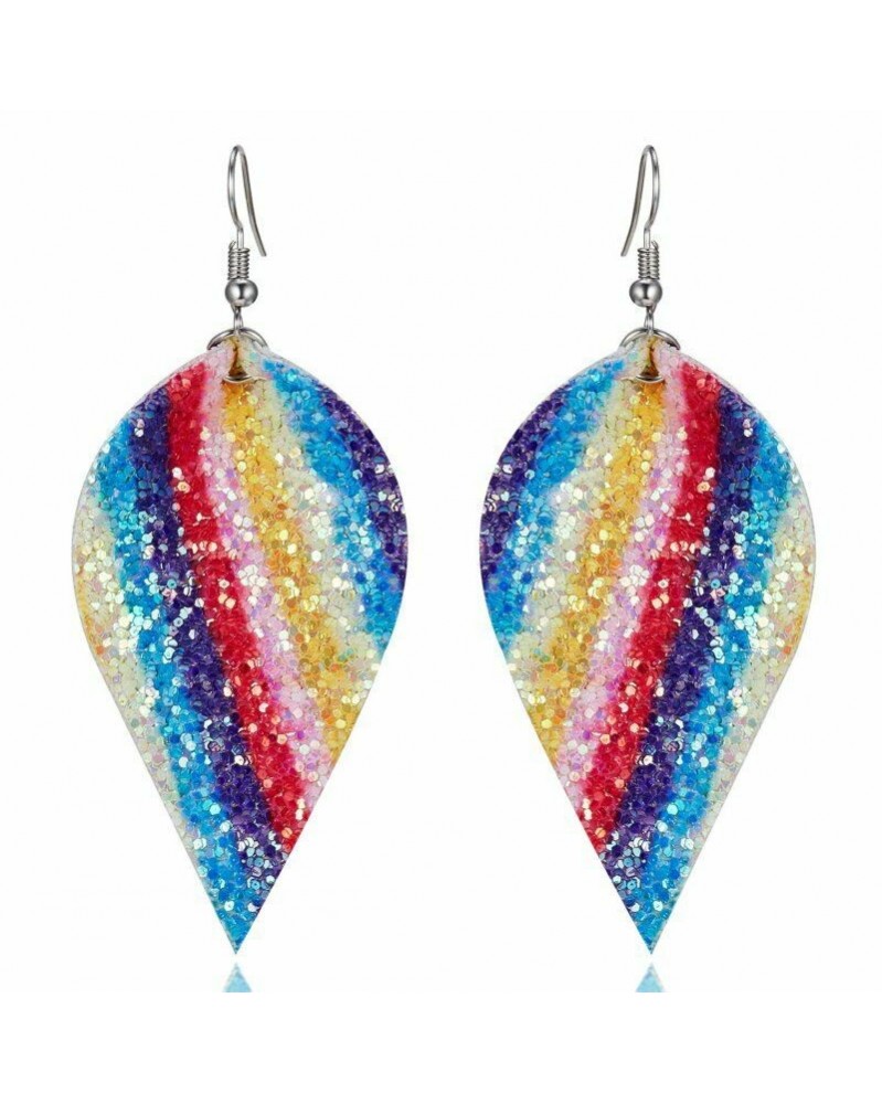 36-színes flitter levél - Divat PU bőr vízcsepp levél horog fülbevaló lóg a női party ékszer ajándék