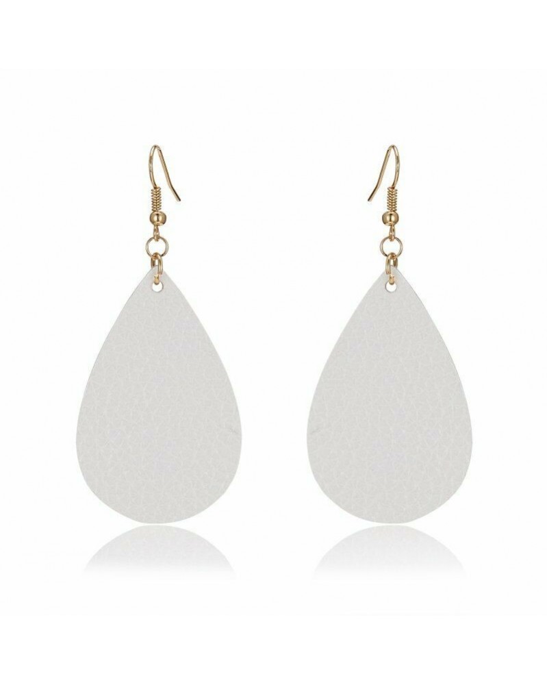 27-Fehér szemcsepp - Divat PU bőr vízcsepp levél horog fülbevaló lóg a női party ékszer ajándék