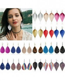 54-Röplabda vízcsepp - Divat PU bőr vízcsepp levél horog fülbevaló lóg a női party ékszer ajándék