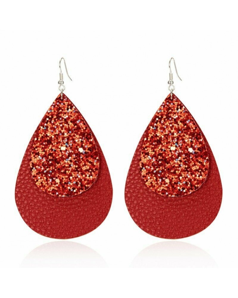 102-Vörös vízcsepp - Divat PU bőr vízcsepp levél horog fülbevaló lóg a női party ékszer ajándék
