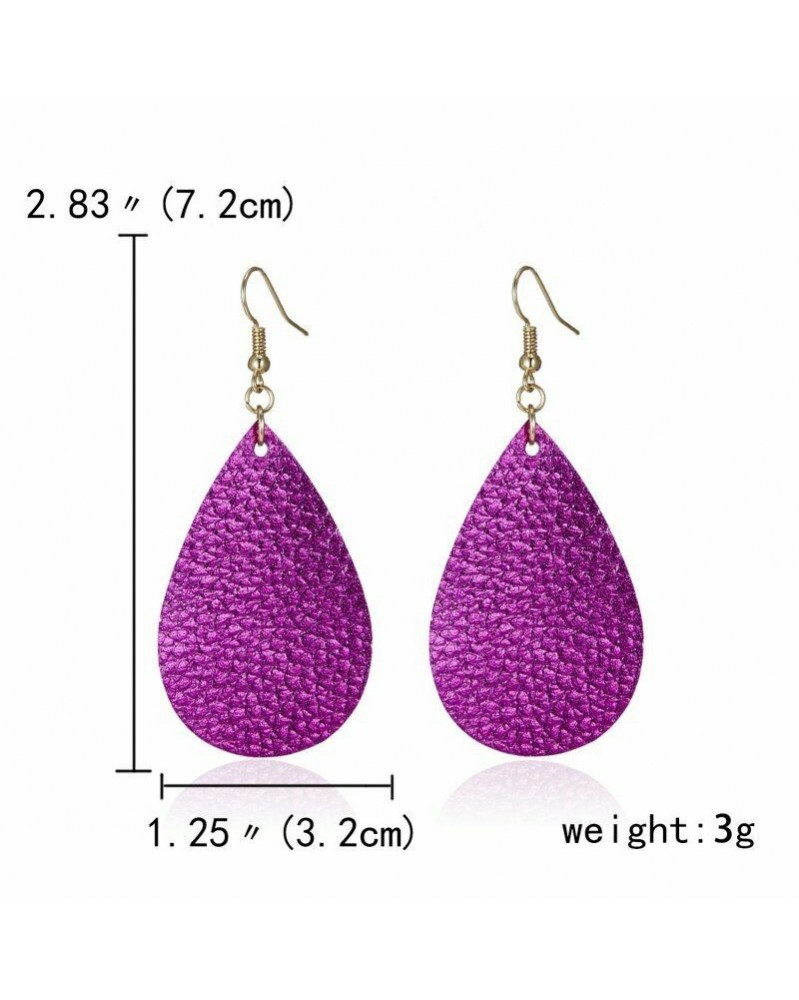 26-Lila szemcsepp - Divat PU bőr vízcsepp levél horog fülbevaló lóg a női party ékszer ajándék