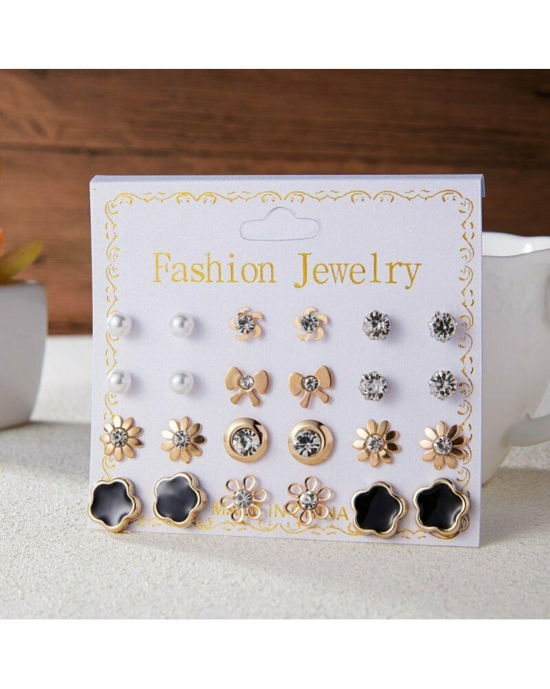 12pár / szett gyöngy - 12Páros / szett strasszos kristály gyöngy bojt fülbevaló szett női fülbevalók ékszerek