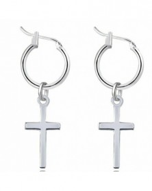 Ezüst-geometriai kereszt - Női férfi geometriai kör keresztmetszetű karika fülbevalók lógó ékszer party ajándék