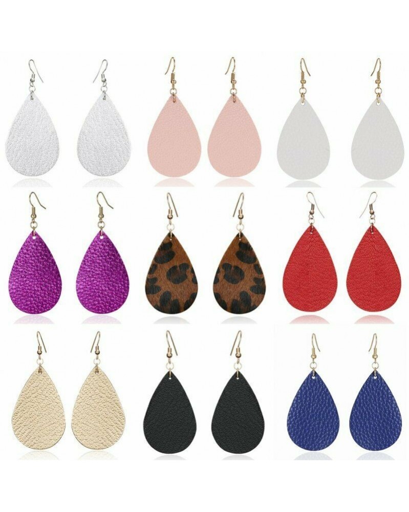 9pár vízcsepp - Divat valódi bőr vízcsepp levél horog fülbevaló lóg ékszer ajándék party