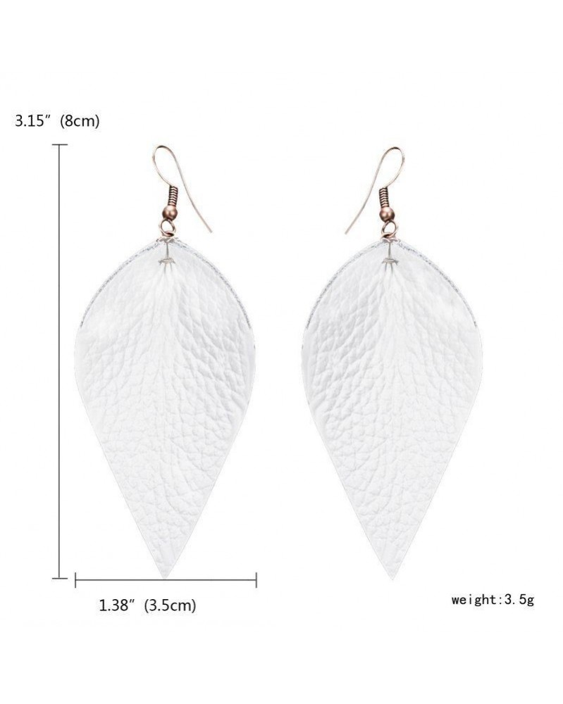 fehér - Női varázsa bőr könnycsepp levél fülbevalók lóg a Boho ékszer ajándék party új