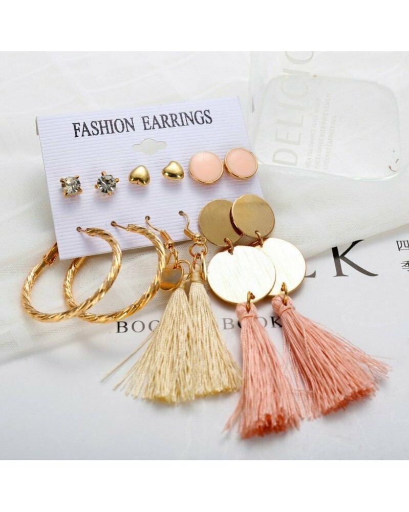 Nincs szín - 6Páros / szett gyöngy szív bojt fülbevalók cirkónia geometriai fülbevalóval női ékszerek