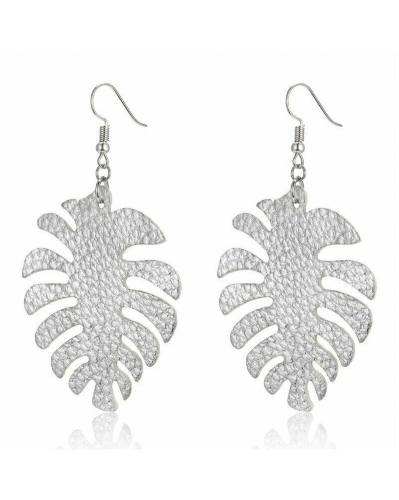 Ezüst levél - Női Boho Teardrop valódi bőr fülbevalók Stud Hook Drop Dangle Charm ékszerek