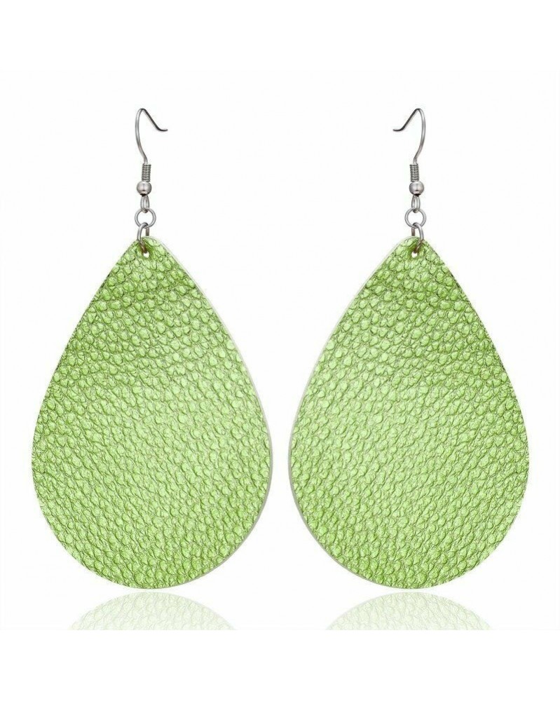 Zöld vízcsepp - Női Boho Teardrop valódi bőr fülbevalók Stud Hook Drop Dangle Charm ékszerek