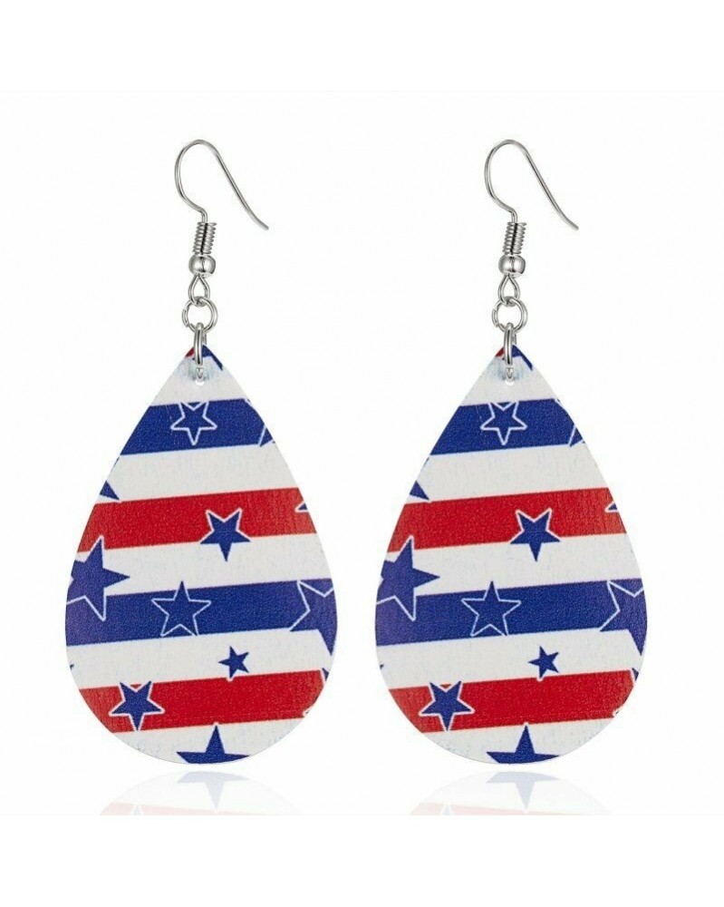 Piros kék fehér vízcsepp - Női Boho Teardrop valódi bőr fülbevalók Stud Hook Drop Dangle Charm ékszerek