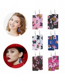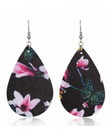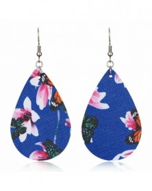 Teadrop Pink Print - Divat Boho virág pillangó nyomtatás bőr horog fülbevaló vízcsepp Dangle csepp
