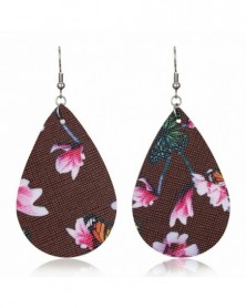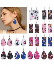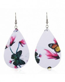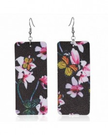 Square Whie Print - Divat Boho virág pillangó nyomtatás bőr horog fülbevaló vízcsepp Dangle csepp