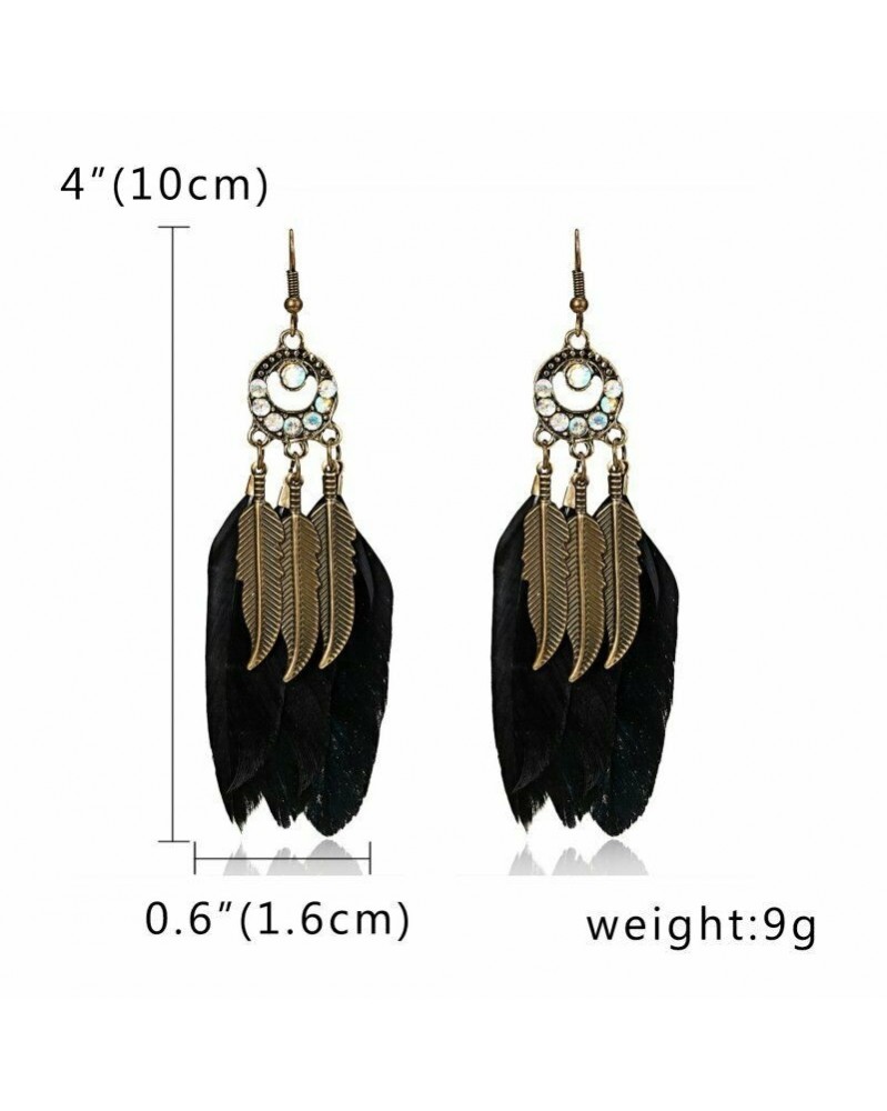 Boho fekete - Bájos hosszú bojt Boho etnikai tollcsepp dangle Stud fülbevaló női party ajándék