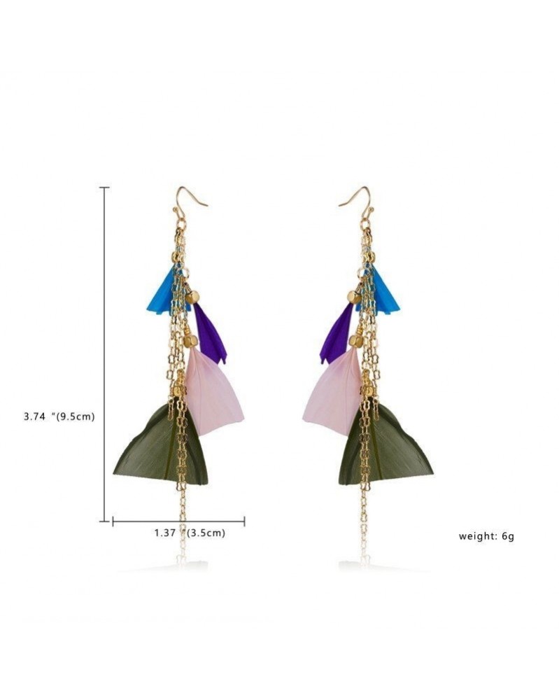 Geometriai toll - Bájos hosszú bojt Boho etnikai tollcsepp dangle Stud fülbevaló női party ajándék