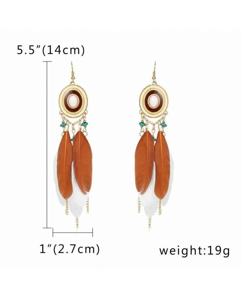 Boho sárga - Bájos hosszú bojt Boho etnikai tollcsepp dangle Stud fülbevaló női party ajándék