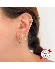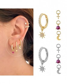 Minimalista két karika fülbevaló négy kis medál hold/csillag/kereszt/gyöngy 925 ezüst fülbevaló női divatékszerekhez