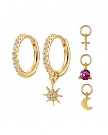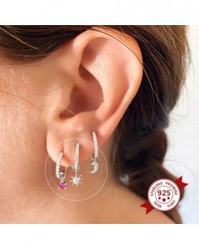 Minimalist two Hoop Earrings four small pendants moon/star/cross/bead 925 Sterling Silver Earring for Women Fashion Jewellery 2021