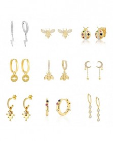 Pendientes Plata 925 Bee Lightning Fancy Diamond Moon Star Ladybug Coin 925 ezüst fülbevaló karika nőknek 2021 Trend