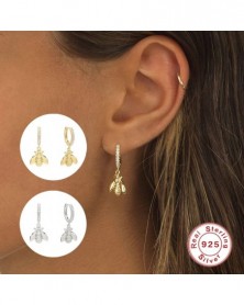 Pendientes Plata 925 Bee Lightning Fancy Diamond Moon Star Ladybug Coin 925 ezüst fülbevaló karika nőknek 2021 Trend