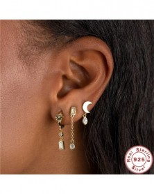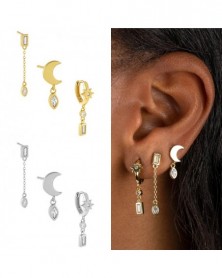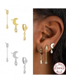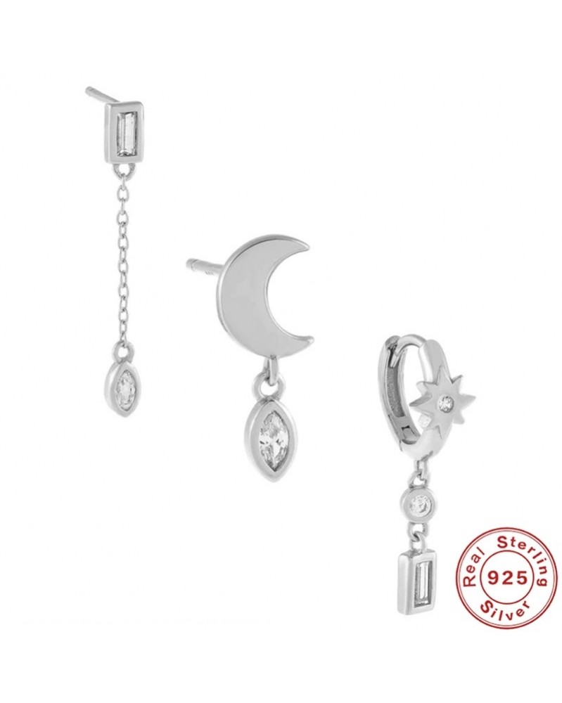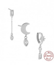 Viny Star Moon Cirkon Medál Trio Pendientes Plata 925 Sterling Silver Fülbevaló Női Piercing Stud Fülbevaló 2021 Trend