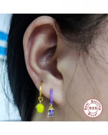 Viny zöld fekete lila francia kenyér cirkóni zománcozott fülbevaló nőknek 925 ezüst fülbevaló karika karika