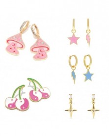 Viny 2021 trendi zománc fülbevaló Pendiente 925 ezüst fülbevaló nőknek Star Lightning Cherry Love Mushroom Stud