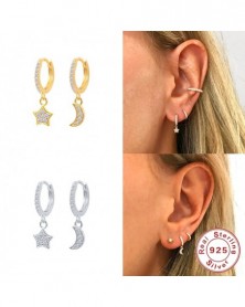 Viny Stars Moon Stone Purple/Turquoise/Green Diamond Pendientes 925 Sterling Silver Earrings For Women Earrings Hoops 2021 Trend