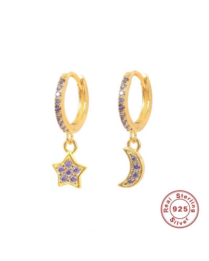 Viny Stars Hold kő lila/türkiz/zöld gyémánt Pendientes 925 ezüst fülbevaló női fülbevaló karika 2021 trend