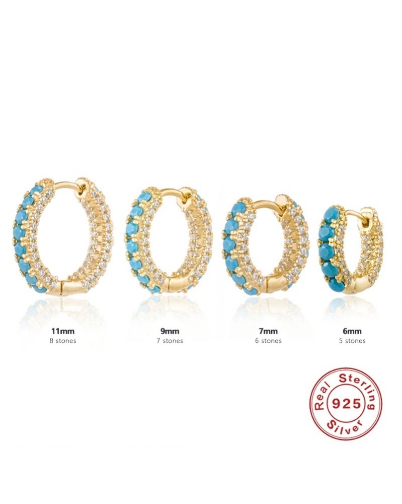 Pendientes Plata Turquoise Round 6 7 9 11 mm 925 ezüst fülbevaló női fülbevaló karika 2021 Trend Vintage Kolczyki